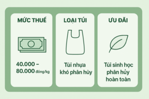 Theo Luật Thuế Bảo vệ Môi trường, túi nhựa khó phân hủy (bao bì nhựa) thuộc diện chịu thuế với mức hiện hành từ 40.000 – 80.000 đồng/kg tùy loại. Chính sách này áp dụng với doanh nghiệp sản xuất, nhập khẩu túi nhựa.